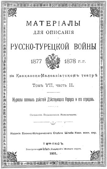 Материалы для описания русско-турецкой войны 1877–1878 гг. на Кавказско-Малоазиатском театре. Том VII. Часть II. — СПб.: Тип. Морского Министерства, 1911. — 352 с.