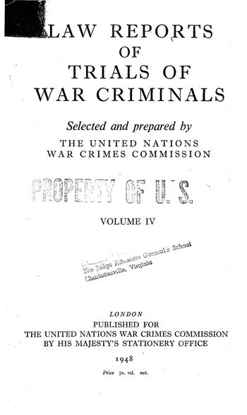 Law reports of trials of war criminals : United Nations War Crimes Commission. Volume IV. — London: Majesty's stationery office, 1948. — 130 p.