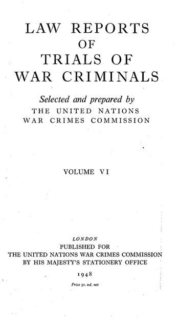 Law reports of trials of war criminals : United Nations War Crimes Commission. Volume VI. — London: Majesty's stationery office, 1948. — 120 p.