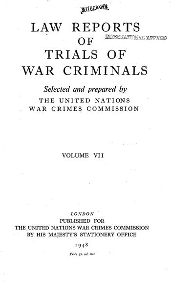 Law reports of trials of war criminals : United Nations War Crimes Commission. Volume VII. — London: Majesty's stationery office, 1948. — 97 p.