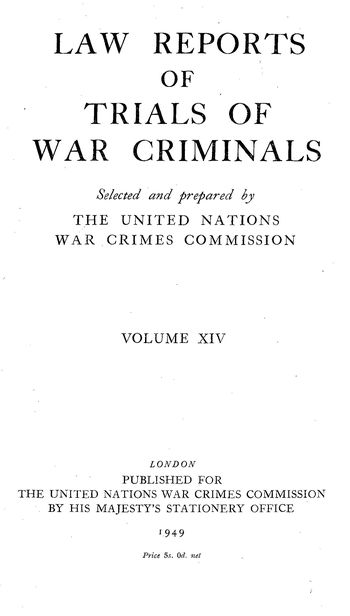 Law reports of trials of war criminals : United Nations War Crimes Commission. Volume XIV. — London: Majesty's stationery office, 1949. — 160 p.