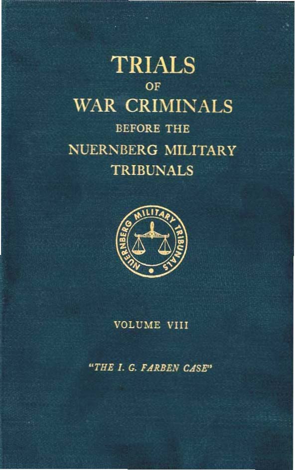 Trials of war criminals before the Nuernberg Military Tribunals under Control Council law No. 10. Vol. VIII. «The I. G. Farben Case». Nuernberg. October 1946 — April 1949. — Washington, D. C.: U. S. Government Printing Office, 1952. — 1454 p.