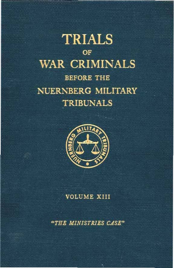 Trials of war criminals before the Nuernberg Military Tribunals under Control Council law No. 10. Vol. XIII. «The Ministries Case». Nuernberg. October 1946 — April 1949. — Washington, D. C.: U. S. Government Printing Office, 1952. — 1205 p.