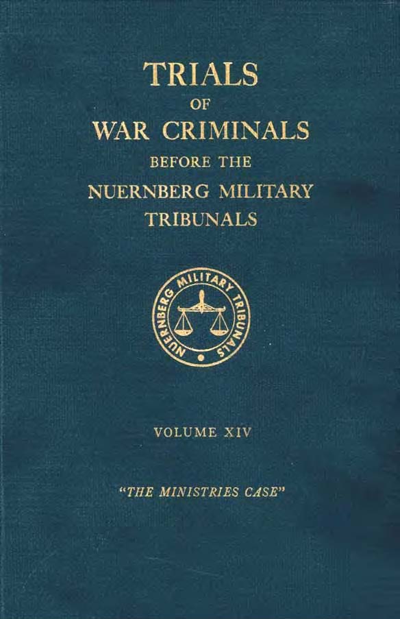 Trials of war criminals before the Nuernberg Military Tribunals under Control Council law No. 10. Vol. XIV. «The Ministries Case». Nuernberg. October 1946 — April 1949. — Washington, D. C.: U. S. Government Printing Office, 1952. — 1270 p.
