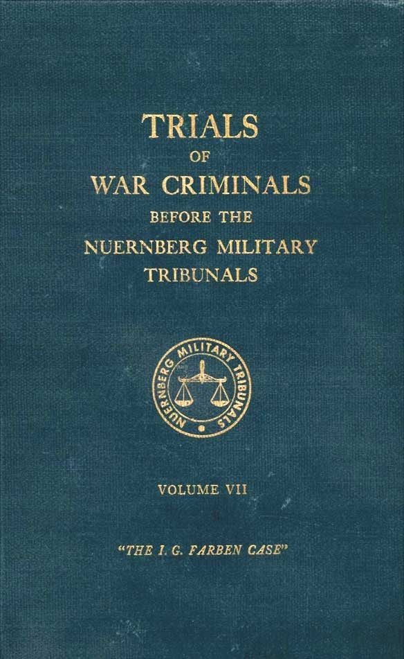 Trials of war criminals before the Nuernberg Military Tribunals under Control Council law No. 10. Vol. VII. «The I. G. Farben Case». Nuernberg. October 1946 — April 1949. — Washington, D. C.: U. S. Government Printing Office, 1953. — 1601 p.