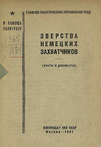Зверства немецких захватчиков : Факты и документы. — Москва : Воениздат, 1941. — 47 с.; 15 см. — (В помощь политруку / Гл. полит. упр. РККА)