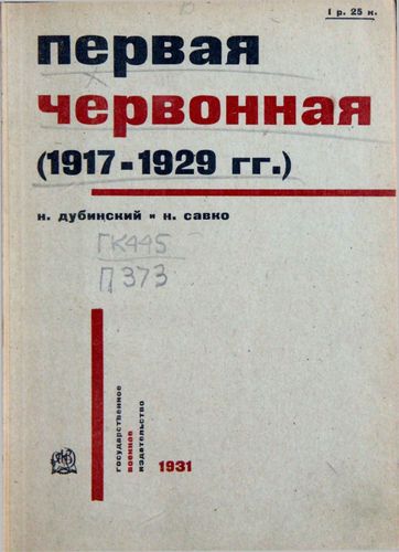 Первая червонная (1917-1929 гг.) : [Сборник] / Под ред. И. Дубинского и Н. Савко. — М.: Госвоениздат, 1931. — 191 с.: ил., портр.; 19 см. — Тираж 5000 экз.
