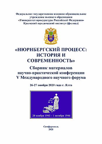 Нюрнбергский процесс: история и современность : сборник материалов научно-практической конференции (г. Ялта, 26-27 ноября 2020 г.) / под общей редакцией Н.Н. Колюки, сост. И.П. Задерейчука, А.П. Сергеевой. – Симферополь : Крымский юридический институт (филиал) Университета прокуратуры Российской Федерации, 2021. – 331 с. — 60 экз.