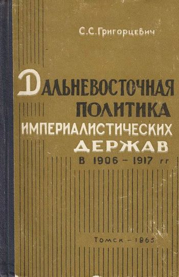 Григорцевич С. С. Дальневосточная политика империалистических держав в 1906-1917 гг. / Томский гос. ун-т им. В.В. Куйбышева. —Томск: Изд-во Томского ун-та, 1965. — 602 с.; 22 см.. — Библиогр.: с. 587-600.