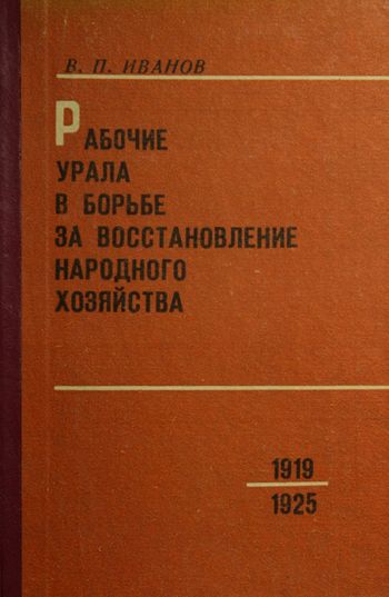 Иванов В. П. Рабочие Урала в борьбе за восстановление народного хозяйства (1919-1925 гг.) / В. П. Иванов. — Томск : Изд-во Том. ун-та, 1985. — 404,[1] с.; 21 см. — 3 р. 50 к. — 500 экз.