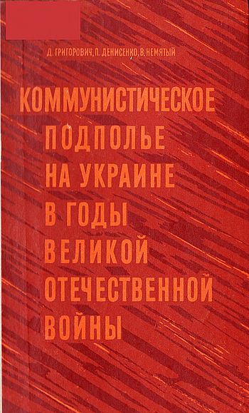 Григорович Д. Ф., Денисенко П. И., Немятый В. Н. Коммунистическое подполье на Украине в годы Великой Отечественной войны / Д. Григорович, П. Денисенко, В. Немятый ; Ин-т истории партии при ЦК Компартии Украины — филиал Ин-та марксизма-ленинизма при ЦК КПСС. — Киев : Политиздат Украины, 1976. — 223 с.; 20 см. — 24 000 экз. — 50 к.